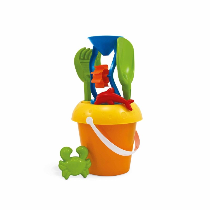 Kbelík na hraní s pískem a vodou, s mlýnkem a nářadím.