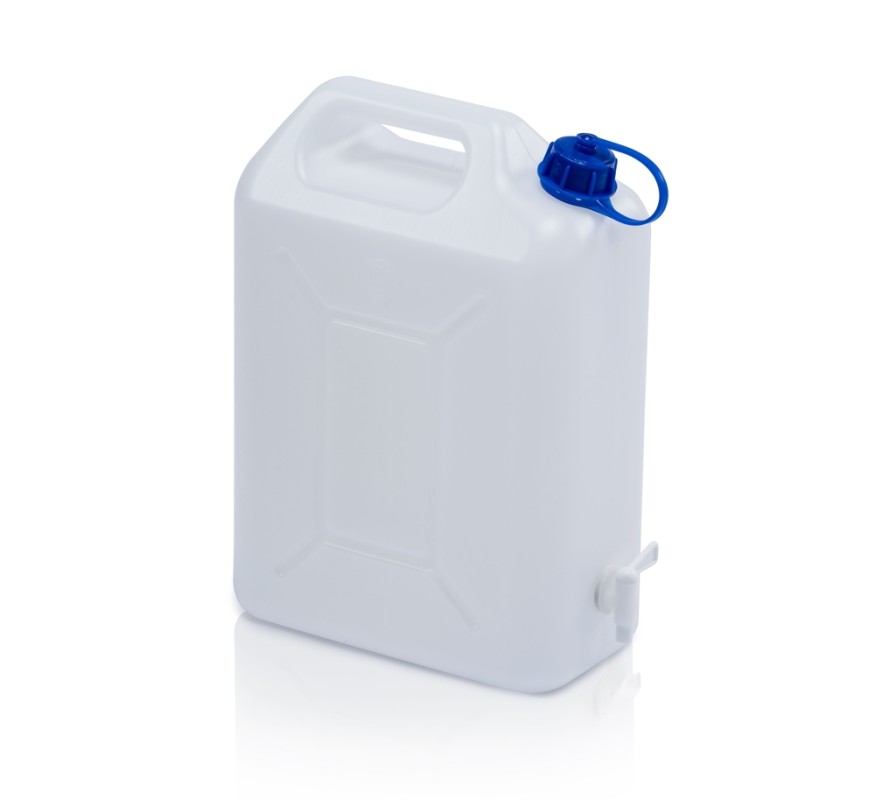 Plastové kanystry s otočným uzávěrem a výpustným kohoutkem určeny pro transport a skladování tekutin.