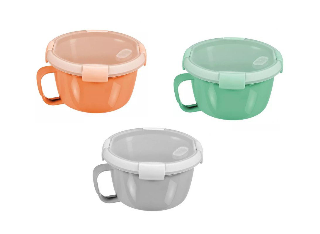 Kulatá dóza na potraviny o objemu 0,9l výborně poslouží k uložení svačinek, polévky, omáčky a dalšího domácího jídla.