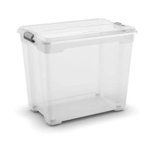 Odolný box s praktickým víkem, které díky postrannímu uzavření perfektně drží. Box je vybaven kolečky pro snadné přesouvání. Moover Box je průhledný, takže vše snadno najdete.