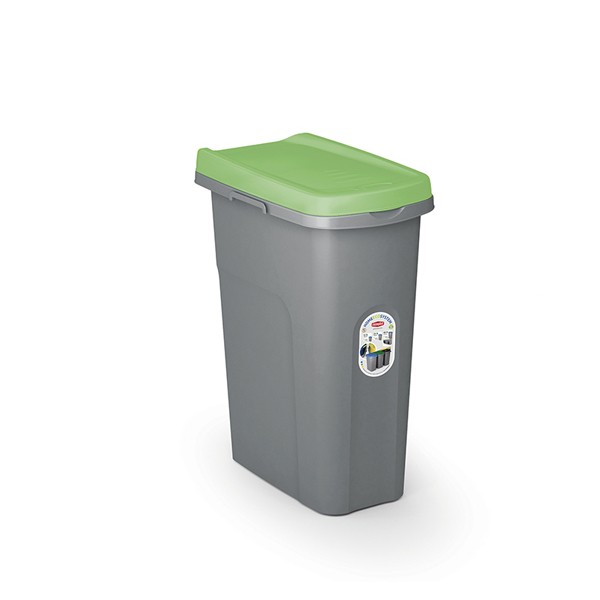 Odpadkový koš z řady HOME ECO SYSTEM je určen k třídění odpadu v domácnosti, kanceláři i ve výrobní hale či skladu. Jeho tvar zaručuje minimální nároky na prostor. Je vybaven plastovým rámečkem pro snadné upevnění odpadového pytle. Barevné víko zjednodušuje rozlišení košů. Díky odolnosti proti dešti je vhodný i pro venkovní použití. Objem 25 litrů je dostatečnou kapacitou pro sběr odpadu.