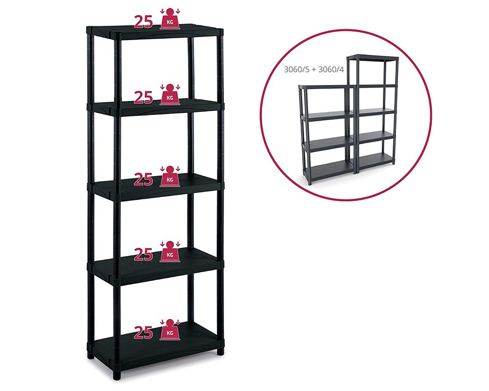 Plastový regál TERRY 3060/5 s 5 poličkami a celkovou nosností 125 kg
