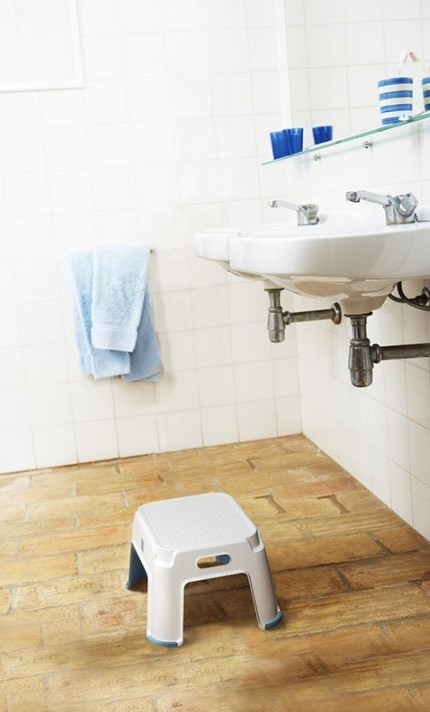 Plastová stolička/stupínek do koupelny i spíže, ale svoje místo najde třeba i v dětském pokoji.