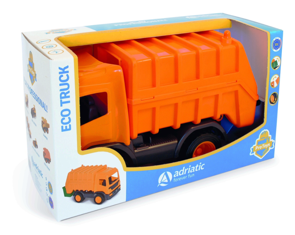 Barevné šestikolové autíčko s popelnicí a nakladačem. hračka vyrobená ze 100%...