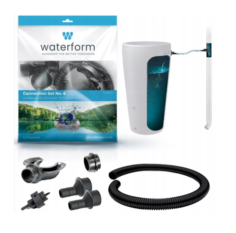 Propojovací sada má za úkol přivádět dešťovou vodu z okapů přímo do zásobníku na dešťovou vodu.