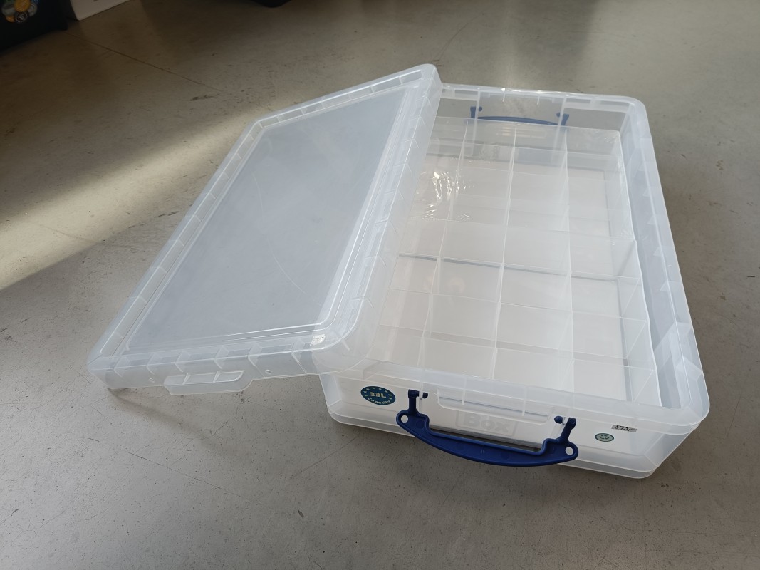 Do boxu lze vložit max. 2 kusy přihrádek vedle sebe pro roztřídění ponožek, vánočních ozdobiček a jiných drobností - https://nakoplast.cz/obchod/really-useful-prihradky-do-boxu-6-transparentni/ .