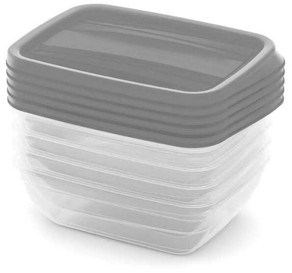 Set 5 kusů plastových boxů s víkem VEDO 0,25 L šedá